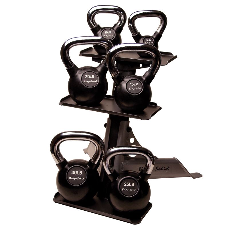 This rack provides the space for up to six kettlebells of any size between 5lbs-50lbs. The shelving is al offset so there is always easy access to grab your equipment. Not only is the modern design stylish, but it is very compact and easy to afford.